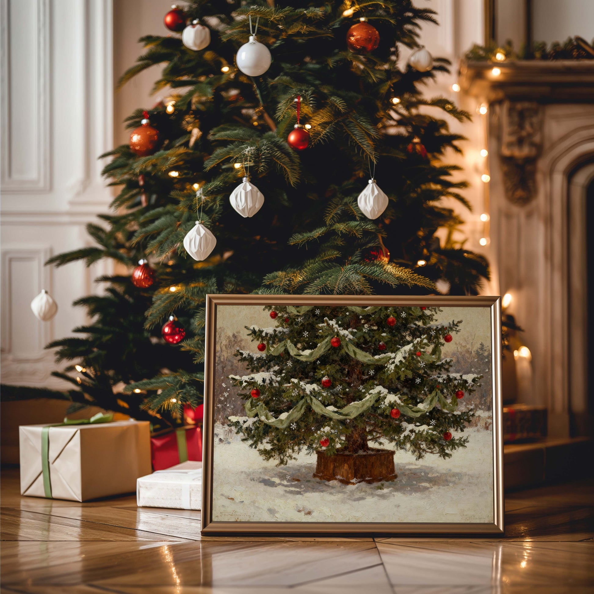 Bring the warmth of the season into your home with this vintage-inspired Christmas art print. Featuring a softly muted color palette and timeless holiday charm, this printable artwork adds a touch of nostalgic elegance to any space. Perfect for your Christmas gallery wall, mantel, entryway, or living room, it’s an effortless way to create a cozy, curated holiday home filled with vintage beauty and festive spirit.